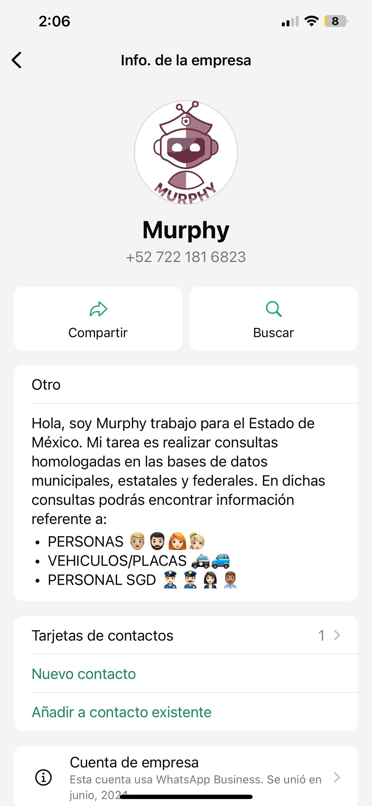 Es un chatbot que funciona en la aplicación WhatsApp y cuya función principal es realizar consultas consolidadas de personas, vehículos y autoridades en varias bases de datos estatales y federales.